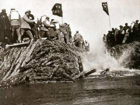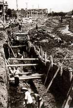 根治海河 海河是天津市工农业生产和人民生活用水的水源,但两岸有600多个下水道污水出口,水源受到严重污染。海河为潮汐河道,涨潮时造成河水咸淡不分。1958年至1962年在党中央、国务院的关怀下,市委、市人民政府动员全市人民进行了大规模的海河改造工程。海河建闸是治理海河的主体工程。在海河口左岸,挖一条长1200米、宽250米的引河,在引河上建闸,靠防潮闸修拦河坝一座,让河水改走拦潮闸,防止海水上溯和淡水流失;为解决渔船出海,建渔船闸一座;改建排污工程,在海河两侧各挖一条郊区排污河,使市区污水经两条排污河泄入渤海。1960年海河改造工程完工后,海河成为清水河、蓄水河。