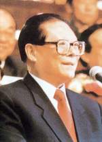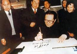 1997年9月10日,江泽民在京参观“辉煌的五年”成就展天津展区
