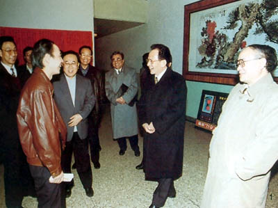 1998年11月,尉健行同志视察天塔时同市、局领导亲切交谈