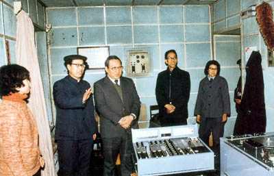 李岚清同志到天津广播电视局视察工作,到电台播出机房看望工作人员