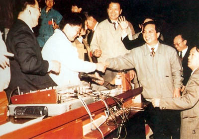 1996年,朱镕基同志视察广播电视塔时同胡文良同志亲切握手