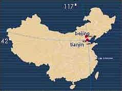 Tianjin is geographically located between Latitude 38°42' and 45°15'