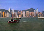 Night scene of Hong Kong. The twinkling building on the right side is Hong Kong Bank of China Building