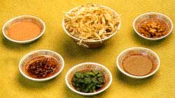 锅巴菜柔软滑润,清素芳香,既可当菜,又可作早点或正餐,同芝麻烧饼一起食用,味美适口。