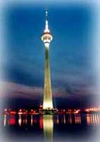 天津广播电视塔,简称天塔,建于1991年,总高度为415.2米,此高度在世界钢筋混凝土电视塔中列加拿大、多伦多塔、俄罗斯的莫斯科塔、中国上海的“东方之珠”塔之后,为世界第四、亚洲第二高塔。