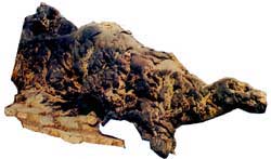 呀!这块青铜色的石头真叫绝了。把猪八戒爱媳妇表现得淋漓尽致:扇动着快活的大耳朵,翘起长鼻子,张大嘴巴吐着舌头,宠着猴媳妇坐在它头顶上,猴媳妇美得合不上嘴儿。再看这一块铁一样凝重的石头,使人想起中国历史楚汉相争的最后,“力拔山兮气盖世”的英雄项羽兵败垓下的悲壮。这块石头由两半组成。左边的一半,高大粗壮,身躯像树干,穿着战袍盔甲,强劲无穷,不可战胜。但天要亡我,我奈何﹖他摘掉帽盔,一把将爱姬搂在怀中。右边的一半苗条娴静,云发在头,眼看着大王江山已去,低眉垂泪,表诉衷肠。英雄爱美人,美人伴英雄,不求同日生,但求同日死。他们紧紧相拥,生离死别,体验着不渝爱情的始与终。这块“霸王别姬”的巨石,也许有一天也会有人编出像阿诗玛一样的故事。还有一块石头,立在一块更高大的巨石身后,它到底像什么﹖当你围着它慢慢地转一圈,转到一个角度,透过几根翠竹的空隙看它时,哇它是一只栩栩如生的大熊猫正在吃竹叶。