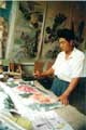 53岁的窦锡珍是个普通的农民,自幼喜欢作画,但由于当时家庭困难,13岁时便辍学务农。从此,他长年在洼港内打草、拾苇子、捉鱼,但没放弃对艺术的追求。没有纸笔,就以大地作纸,木棍为笔,画海阔天空的物和景。20岁的时候,窦锡珍在村里已小有名气,第一次正式参加了太平镇举办的首届书画展,并获得二等奖,后来又在镇里第二届书画展中获得了一等奖。