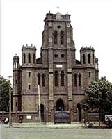 第二次鴉片戰爭后,英、法等國強迫清政府簽訂了喪權辱國的《北京條約》,使法國獲了在中國“各省租買地”和“建造自便”的“權利”。1862年,法國攫取了望海樓一帶方圓15畝地方的“永租權”。1896年12月,法國傳教士謝福音主持拆掉了崇禧觀,在原來地基上蓋起一座規模可觀的天主教堂。這是一座典型的哥特式建筑,呈長方形,前邊有3個鐘樓,仿佛3個筆筒。法國傳教士給這座教堂取名為“圣母胜利之后堂”,并將此名用法文刻在教堂鐘樓正面的大理石上。當地人稱這座教堂為“望海樓教堂”。