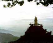 從万松寺西北側攀行,可達青松岭。岭西端有一平台,能体頑石,三面壁立,這就是舞劍台。相傳,當年唐朝名將李靖在北台拔劍起舞。站在舞劍台上,北望雙峰插云,東望挂月峰雄峙,南望平疇千里,西望層巒迭嶂,“天風浩浩,四望無极”,磅礡气勢,蕩胸激怀。