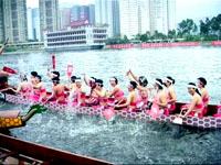 章輝軍 王瑋):下午1時,2001香港•天津周万隆杯龍舟大賽在香港沙田城門和水域開槳。來自天津、香港和澳門的36支龍舟隊1千余名選手進行了3個小時的激烈角逐。天津市副市長王述祖出席了開幕式并講話。香港特別行政區康文署官員、香港龍舟協會主席、天津市有關單位負責人及津、港、澳三地參賽高校校長和企業負責人出席開幕式并觀看了比賽