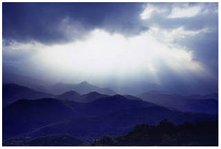 云雾在山上常会随风方向移动,有时却停留在山腰间或只露出山峰,层雾存在树林中,太阳从枝叶稀疏的空间照射到林中产生一条条的斜阳光线,这种不同的光线,随着太阳高低转移投射方向和角度,显示出明暗的光柱。这一切自然景物变化,给我们拍摄山林景色创造了优越的条件,只要我们身处其景,及时掌握景物的自然变化,才能拍出有艺术性,高质数的风光照片。