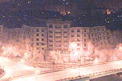 | | 武汉饭店起爆瞬间 | 今晨零时33分,伴着3声闷响,10秒钟内,简洁庄重的武汉饭店轰然坍塌成一堆瓦砾。这次控爆比原定时间推迟48分钟。