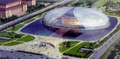 经过4年的周密准备,国家大剧院日前正式开工。国家大剧院位于人民大会堂西侧,占地11.89万平方米,总建筑面积14.95万平方米,设有歌剧院、音乐厅、戏剧场以及艺术展厅、艺术交流中心、音像商店等配套设施,工程概算总投资26.88亿元,建设工期4年。国家大剧院的设计师是法国著名建筑师保罗·安德鲁。