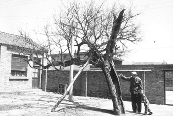 冬季风多风大,本市一些村民加强对古树的管理和保护,为古树搭上围墙,支上木桩,架上水泥杆,以防止被大风刮倒、刮断。(陈玉贵 摄于北辰区大张庄镇大吕庄村)