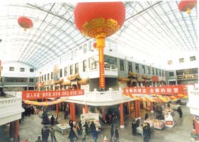 | | 食品街内的玻璃穹顶是天津目前规模最大的,也是整修工程中的一大亮点。 | “吃在食品街”,整修一新的南市食品街将迎来21世纪的第二个新年,以全新的面貌与游人见面。