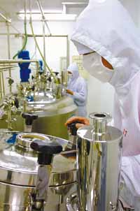 目前,12个大公司、大集团正在实施培育科技力量,增强自主开发能力,关键技术赶超国际先进水平计划;实施企业名牌战略,积极拓展企业品牌;抓住扩张机会,实施多元化经营等,把公司、集团做实做强,发展成为具有较强国际竞争力的大企业集团。力争“十五”期间,实现建设工业十大“百亿集团”,“十五”末有10个企业进入全国工业500强,有5个集团销售收入过300亿元,10个过百亿元的目标。(李玉峰)  | | 天津药业集团有限公司车间 |