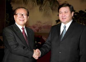 | | 1月8日,国家主席江泽民在北京中南海会见蒙古总理恩赫巴亚尔。 |