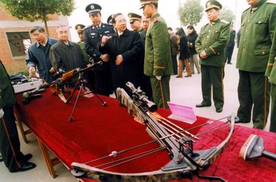 走进反恐怖中队营区,几十名身着褐色、黑色、白色相间迷彩服的官兵正在擦拭着武器,地上摆着几挺带红外线瞄准镜的“八五”式阻击步枪,有几名战士从未见过如此先进的武器,边擦拭边端枪、瞄准,脸上洋溢着灿烂的笑容。