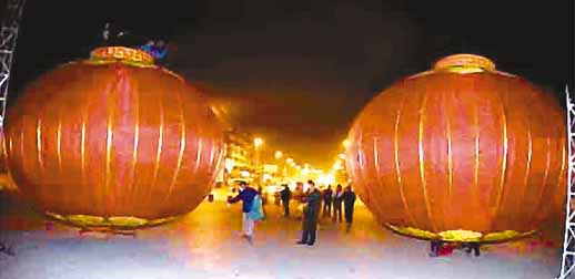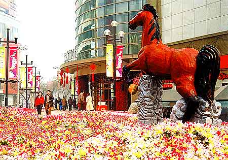 在重点地区,悬挂传统宫灯和大幅春联,中环线和内环线、三河桥梁全部悬挂串旗。南京路从凯旋门至海光寺,建成“火树银花一条街”,道路上空全部悬挂“满天星”。津联大厦门前建成“百骏图”大型灯光景点,泰安道建成“彩光一条街”,水晶宫饭店对面建成110米长、30米高的“向全市人民拜年”大型景点,天津礼堂对面用56个带灯光的“中国结”组成大型景点。此外,水上公园等10个公园也进行了重点布置,星光广场等12个广场、天塔地区等15片地区也将成为人们游乐观光的好去处。(记者王军杰)