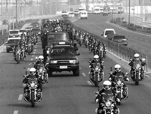 | | 押解犯罪嫌疑人的警车驶过大街 |