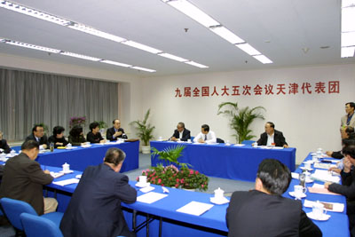 北方网北京专电:今天上午,出席九届全国人大五次会议的天津代表团继续分组审议“两院”工作报告及李鹏委员长的人大常委会工作报告。全国最高人民法院副院长张军列席参加审议。