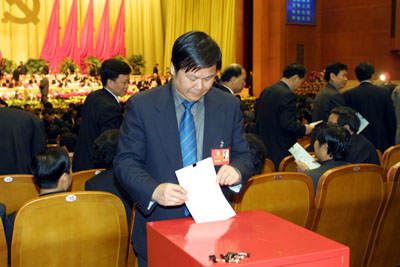 代表们正在投票选举中共天津市第八届委员会、中共天津市纪律检查委员会和天津市出席党的十六大代表(摄影/刘雁军)