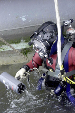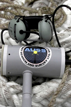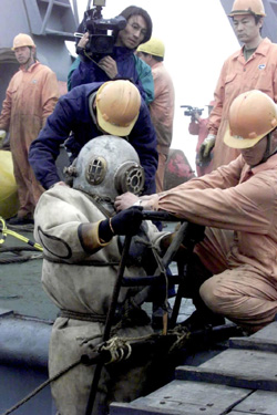 潜水员手执声纳信标接收仪下海搜寻黑匣子