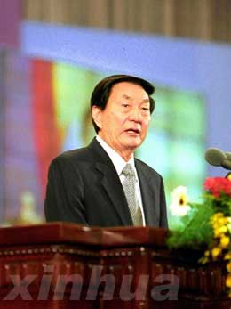 | 朱镕基在开幕式上作题为“大力推进新世纪的 国际科技交流与合作”的主题报告。 |