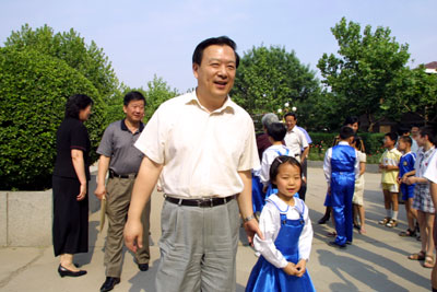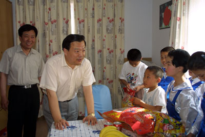 夏宝龙信步走入儿童村的一幢小楼,生活在这栋房子中的小主人和他们的妈妈立刻用热烈的掌声欢迎市领导的到来。在这里,夏宝龙给孩子们分发了礼品,并关心地询问了他们学习生活的情况,当得知共有9个孩子生活在这个大家庭时,他向孩子们的妈妈表示了衷心的问候。  | | 夏宝龙副市长来到孩子们中间 |
