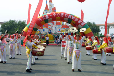 上午9时,近百名小画家开始在水上公园北门广场百米长卷上自由作画,并将这些作品赠送给儿童福利院等地的小朋友。这些活动给小朋友带来了浓厚的节日乐趣,也帮助他们实现了美好的愿望。活动现场还邀请了天津著名漫画家段纪夫、左川、曹开翔、朱森林等为游客现场画漫画、天津民间艺术表演队也在活动现场展示了各种民间工艺。(记者/刘雁军 摄影 刘雁军)