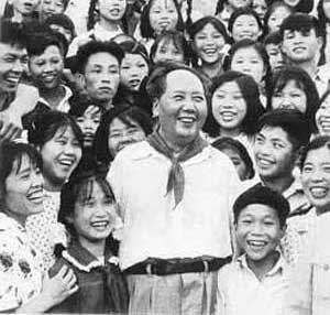 | 为了加强党对社会主义建设的领导,1957年4月,中共中央决定进行以反对主观主义、宗派主义、官僚主义为主题的整风运动。图为陕西省西北第一棉纺织厂职工在小组会上向党员干部提意见。 | 1957年,毛泽东同志说:“世界是你们的,也是我们的,但是归根结底是你们的。你们青年人朝气蓬勃,正在兴旺时期,好像早晨八九点钟的太阳。希望寄托在你们身上。”图为毛泽东与少先队员在一起。 |