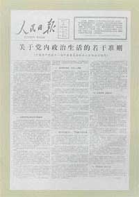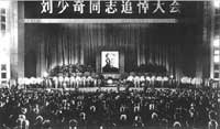 | 大力加强和改善党的领导,健全党内的民主生活,增强党的战斗力。图为1980年2月在北京召开的党的十一届五中全会通过的《关于党内政治生活的若干准则》。 | 1980年2月24日,中共十一届五中全会一致通过了为刘少奇平反昭雪的诀议,恢复他作为“伟大的马克思主义者和无产阶级革命家,党和国家主要领导人之一”的名誉。5月17日,刘少奇同志追悼大会在人民大会堂举行。 |