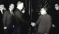 | 1984年2月,邓小平在华盛顿会见国际战略研究中心代表团时提出了“一国两制”的概念,他认为这是解决某些国际争端的明智选择。 | 1984年4月,邓小平会见美国总统里根。 |
