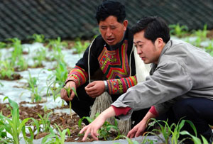 | | 这是新林镇农技站站长葛综文教麻柳村老支书阿罗罗布新技术 |
