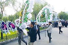 众多死难者亲属面对亲人的遗体失声痛哭,整个城市弥漫着悲痛的气氛。此次遇难的鸡西矿业集团总经理赵文林的遗体已被找到。今天下午,上万名职工和群众自发地来到他的遗体前含泪告别。据统计,今年1月至5月,赵文林每月平均下井16次以上,干部职工称他为“解困局长”。