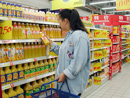 陈文蕾女士介绍说,随着收入的增加,人们的生活方式也在改变,人们更加关注健康,果汁饮料以补充维生素的形象出现自然吸引众人目光,果汁产品一般定位在年轻人特别是青年女性,大多数消费者都认为PET(塑料瓶)饮料更显时尚潇洒,具有喜欢流行特质的人群会更多选择PET包装的果汁饮料。