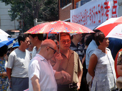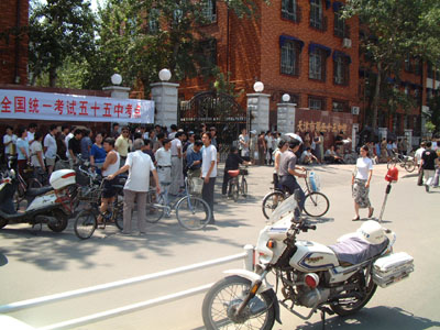 临近上午考试结束,五十五中考点外开始聚集了众多等候的家长