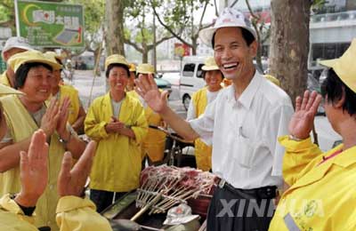 他叫朱崇跃,是全国“十佳职业道德标兵”、全国先进工作者、全国“五一”劳动奖章获得者,现为临沂市市容管理办公室主任。他的事迹感人至深,职工叫好,市民夸好,领导说好,当地党委已把他作为基层党员干部学习“三个代表”的“活教材”!