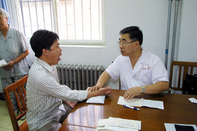 北方网专稿:上午7:30分,记者来到位于天津市玉泉路天津中医学院的保康医院。在张伯礼的专家门诊室外,已经有40余位病人在排队等候治疗,他们大多是清晨四点多钟来此排队挂号,其中不乏慕名而来的外地病人;再看诊室内,张伯礼的诊疗桌上已经摞起了一堆病例本,他正在全神贯注地为病人诊脉、压舌、询问、开方……
