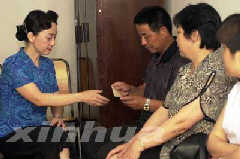 杜贤英(左)在劳动事务所接待 前来寻求帮助的下岗失业人员。 |