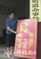 在杜贤英的劳动事务所门前,大牌子 上写着“欢迎广大失业、下岗职 工来本所求职”。 |