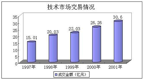 北方网消息:党的十五大以来,本市加大技术产权市场法制体系和管理体系建设,促进了技术交易市场的活跃繁荣,推动了科技成果向现实生产力的转化。据统计,2001年,本市通过技术市场签订的技术开发、技术转让、技术咨询和技术服务合同到达了7335项,合同累计成交金额30.6亿元,成交金额比1997年增加一倍。(北方网记者/刘雁军通讯员/槐克刚李萍)