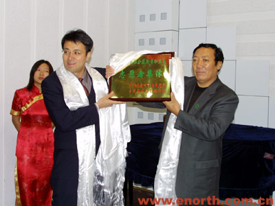 开通仪式上,才嘎局长授予北方网“可可西里保护藏羚羊和生态志愿者集体”称号,并向北方网赠送了珍贵的礼品——藏羚羊雕塑。随后,才嘎局长同网友代表一起为北方网网友捐建的“可可西里——北方网图书馆”揭牌。