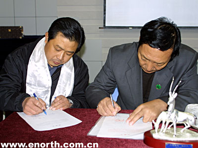 安达集团代表(左)与可可西里管理局签订未来捐赠设备协议