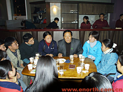 晚上,才嘎局长一行和北方网工作人员一起来到卡斯伯特咖啡吧为这次活动举办的专题沙龙,与等候在那里的大学生和网友兴致勃勃地聊天,回答大家所关心的问题。