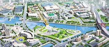 第七节点:东丽区的先锋南“智慧城”,在海河北岸环境优美的先锋南地区建设体现未来城市、未来建筑的概念展示区,使之成为天津服务全国的现代建筑产业基地。