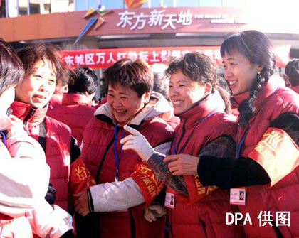“能够参加十六大的保卫工作,这是我们治保积极分子的光荣和自豪!”作为治保积极分子代表,北京东城区多福巷社区主任李佩芝在北京市举行的“万人红袖标上街保安全”授标仪式中高兴地对记者说。从11月1日开始,北京城八区共有10万名治保积极分子、协警力量和群众志愿者和她一样,佩带统一的治安巡逻红袖标,在民警的带领下,巡逻在北京的每一个地区、街道和路段。亮满全城的治安红袖标,为十六大召开前夕的北京城,增添了一道美丽的风景。
