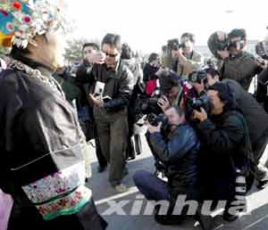 【附图】记者在会场外拍摄代表