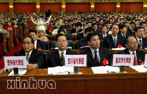 11月8日,中国共产党第十六次全国代表大会在北京人民大会堂隆重开幕。这是贵州、四川省、重庆市代表团在大会上。