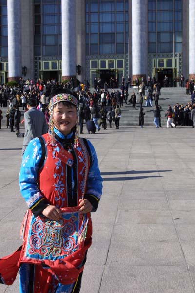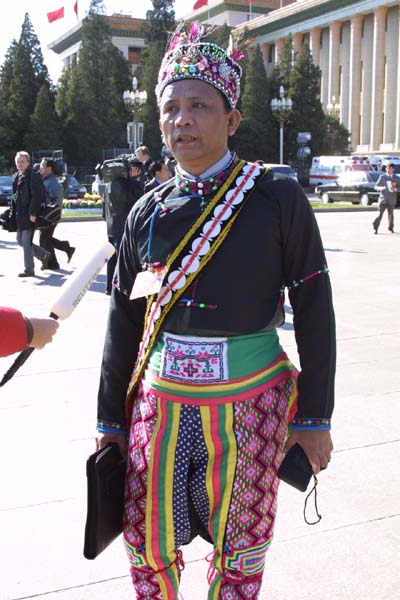 举世瞩目的中国共产党第十六次全国代表大会11月8日在北京召开。参加大会的2000多名代表中,少数民族代表占10.9%。在今天的开幕式上,他们穿着鲜艳的民族服装,在朝阳的映照下,组成了党代会上的一道亮丽风景。